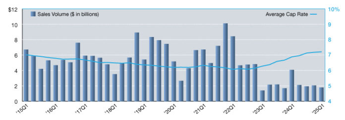Cap rates within the sector edged higher for the tenth consecutive quarter, averaging 7.21 percent at the close of first-quarter 2025. However, the pace of cap rate expansion has slowed dramatically. When comparing the 3-basis-point increase reported in the most recent quarter to a 30-point rise in the nine months preceding, trends suggest the greatest volatility is now behind us.