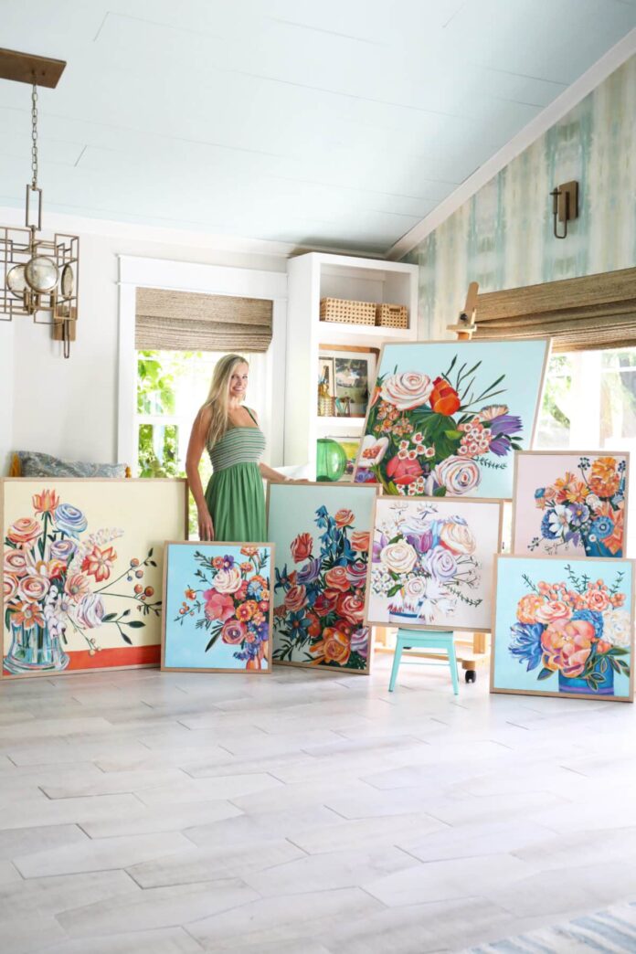PS: Be sure to check out our new frame options with great new design, with custom sizes, as well as commissioned pieces, too. This is an example of my Daybreak piece in a 40 x 40 {larger than the original, and perfect for this sweet patron’s daughter’s space!} She makes the cutest model. My point? We’re happy to work with you, if you’re looking for something specific. Just let us know if we can answer any questions!
