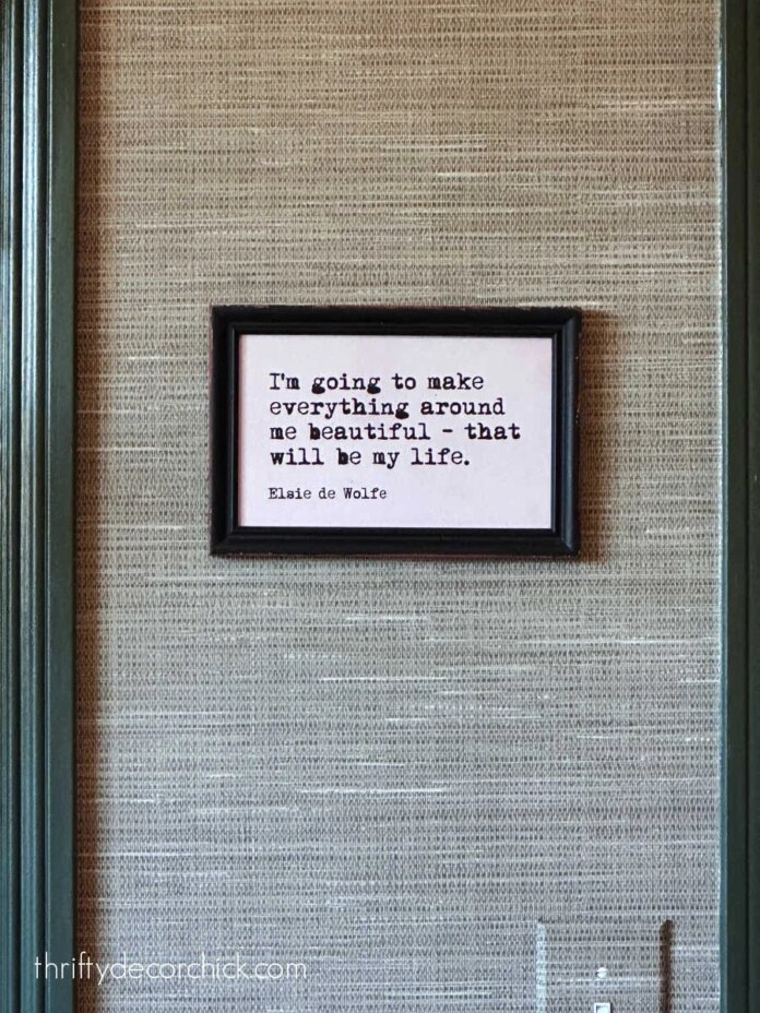 The neutral wallpaper breaks up the walls, so this room isn’t completely color drenched. But I did paint all of the trim to match the lower walls and built ins.
