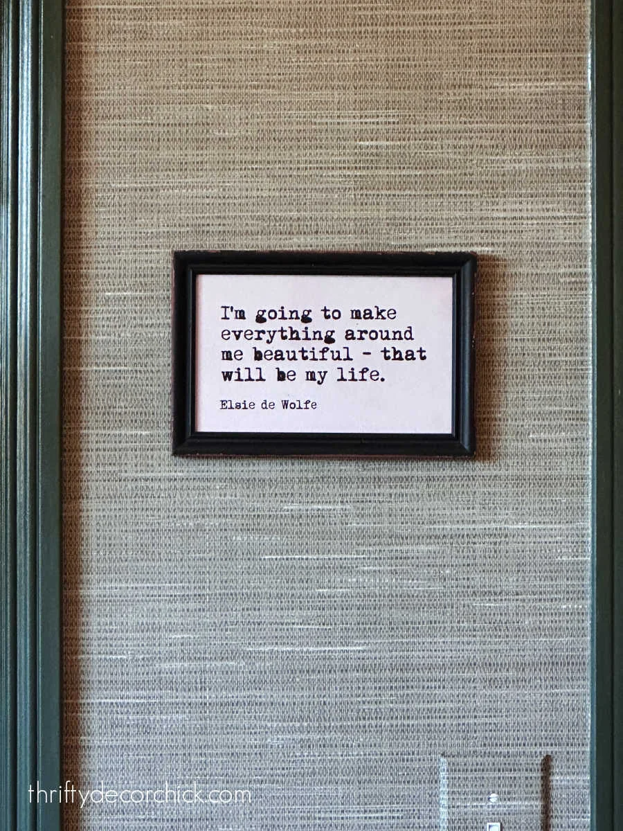 A tour of my moody home office makeover reveal, with grasscloth wallpaper and DIY wall paneling.