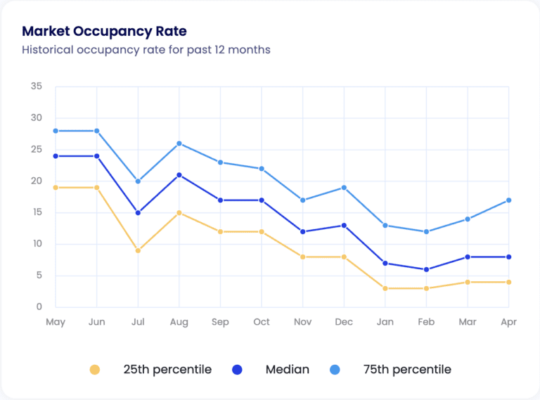 As you can see, calculating the occupancy rate for a single property for one or two months is easy. However, things can get pretty complicated if you want to know the occupancy rate of an entire area to know where to buy a profitable investment property, or to compare the performance of your rental to the average.