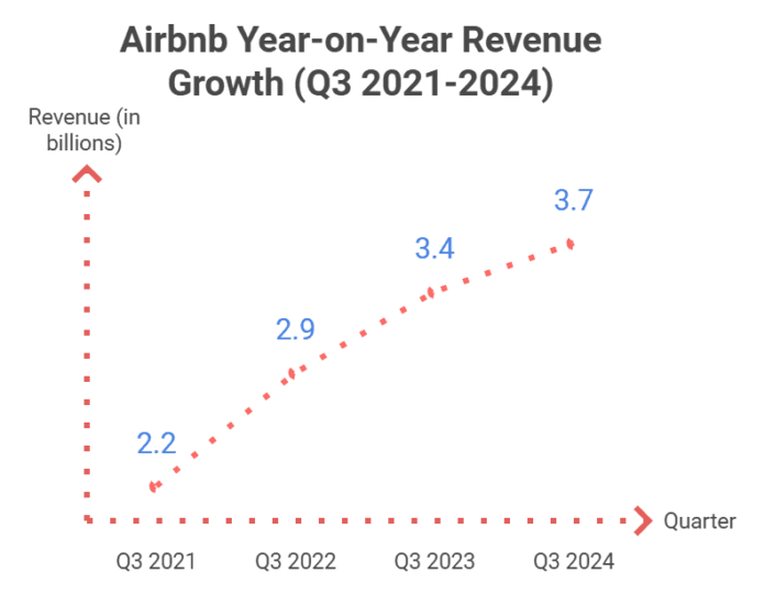 Airbnb’s growth strategy includes significant investments in regions with high potential, such as Japan, Latin America, and Asia-Pacific. These areas are now experiencing faster growth than Airbnb’s core markets. Initiatives like targeted ad campaigns and local payment options aim to increase Airbnb’s appeal and usability in these regions.