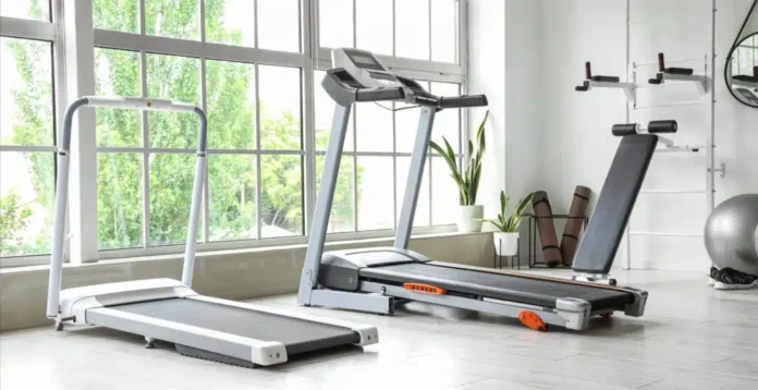 Home gym featuring treadmills and Amenity - workout equipment in a bright, plant-filled room.