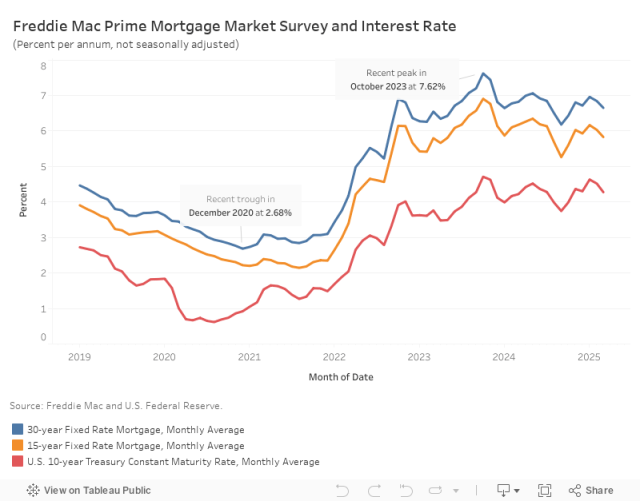 The uptick in mortgage rates followed a sell-off in U.S. Treasury securities, driven by concerns surrounding the ongoing trade war. As demand for Treasuries declined, prices fell and yields rose. The 10-year Treasury yield averaged 4.28% in April, with the most recent weekly yield rising to 4.34%. The sell-off signals a potential loss of investor confidence in what is typically considered a safe-haven asset.