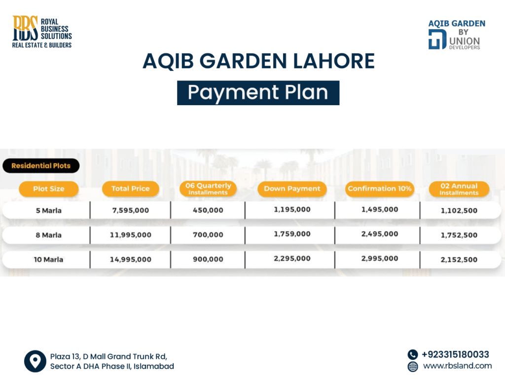 Aqib Garden Lahore Payment Plan