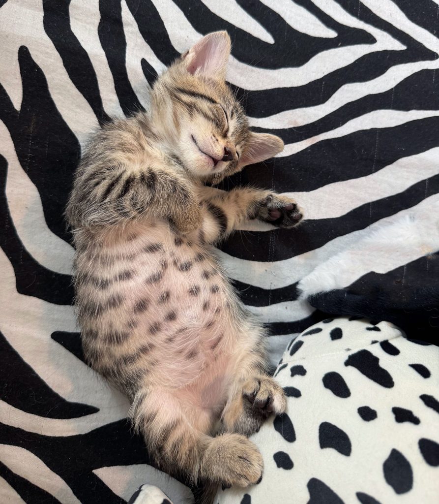 Black and White Kitten Sleeping On Zebra PrintBlack and White Kitten Sleeping On Zebra Print