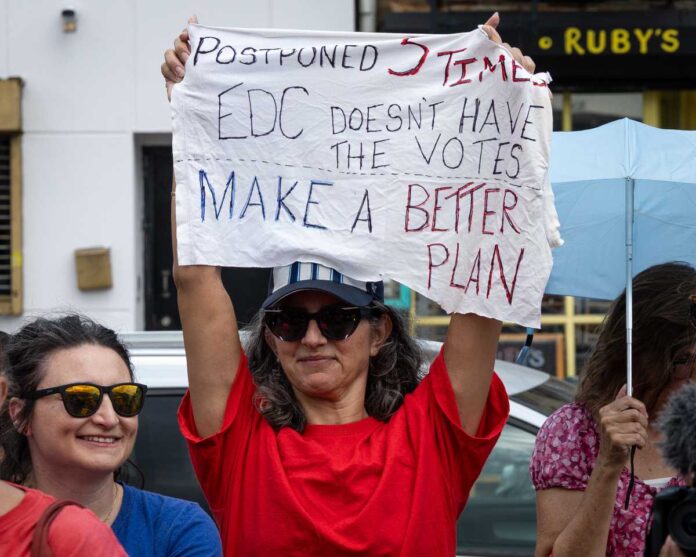 Despite the postponement — a new date has not yet been announced — community members rallied outside 100 Columbia St. alongside Rep. Jerry Nadler (D-Manhattan), Assembly Member Marcela Mitaynes (D-Brooklyn) and Council Member Avilés, voicing opposition to the NYCEDC-led plan in its current form.