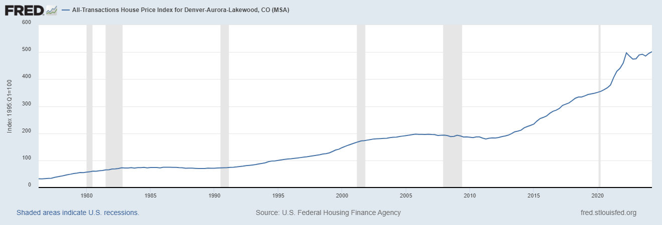 Examining the All-Transactions House Price Index for the Denver-Aurora-Lakewood Metropolitan Statistical Area (MSA) provides insight into the broader price trends impacting the region. The data from the U.S. Federal Housing Finance Agency outlines the following index values: