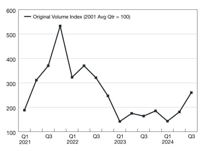 Commercial and multifamily mortgage loan originations increased 59 percent in the third quarter of 2024 compared to a year ago, and increased 44 percent from the second quarter of 2024, according to the Mortgage Bankers Association’s Quarterly Survey of Commercial/Multifamily Mortgage Bankers Originations, released last month.