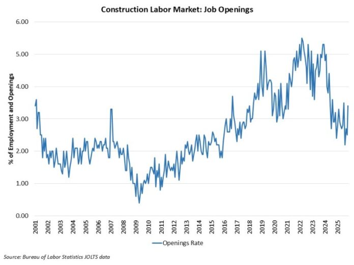 Construction Job Openings Increased in November – Eye On Housing