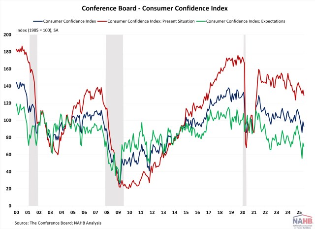 After a strong rebound in May, consumer confidence resumed its downward trend in June. Consumers remain concerned about the economy and labor market amid ongoing uncertainty, especially around tariffs. This month’s decline erased almost half of last month’s sharp gain, suggesting continued volatility in consumer sentiment.