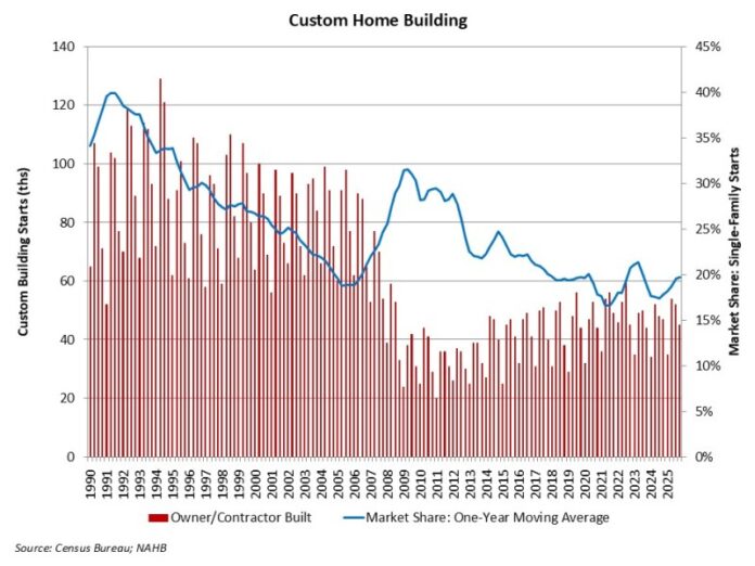 However, for 2025 as a whole, custom single-family housing starts totaled 186,000 homes, a 3% increase compared to 2024 (181,000).