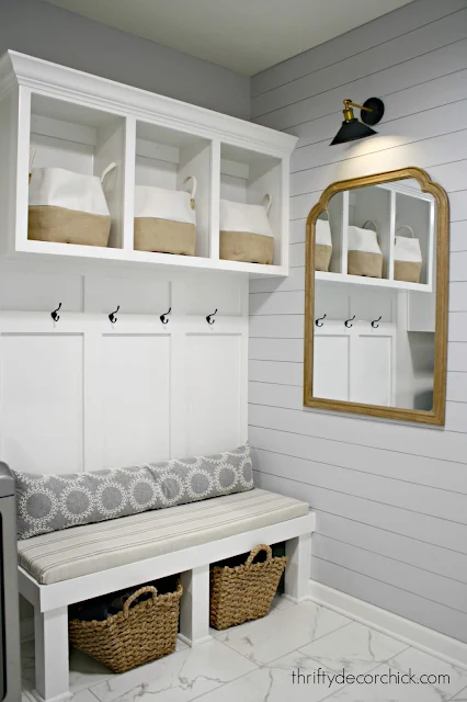 The only part that bugged me were the baskets underneath the bench. I used what we had when we moved in, but they drove me absolutely crazy. They shed everywhere and didn’t hold their shape.