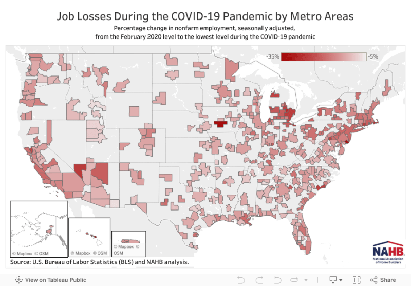 The story of employment loss and recovery across U.S. metro areas underscores the uneven geography of the COVID-19 economy. The resilience of local economies has since reshaped the post-pandemic landscape, revealing not only where recovery has taken root but also where it remains incomplete. And of course, the health of local labor markets has important impacts on the status of local home building and remodeling conditions.