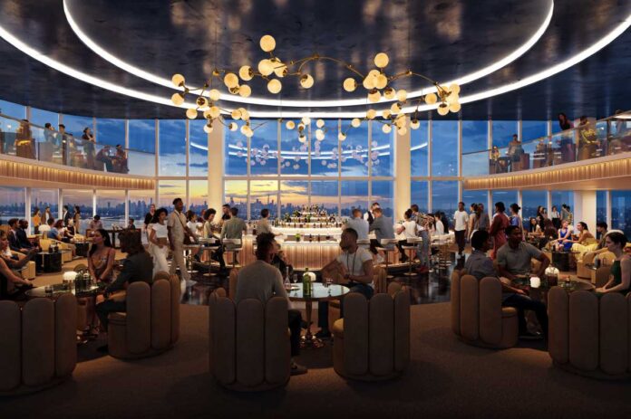 Rendering of the rooftop bar at the proposed Bally’s casino-hotel complex.