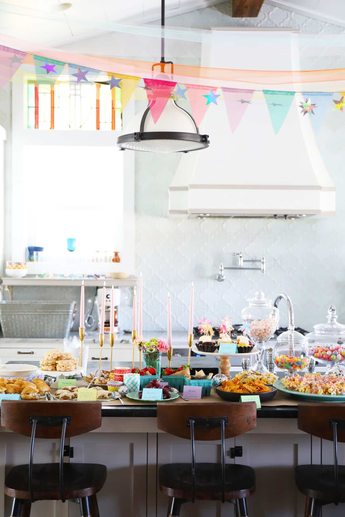 I love that the party decor was a culmination of some of her faves… from her watercolor party to her narwhal party, her unicorn party, and her glow party, too. It was a throwback in the very best of ways with a lot of parties I never even shared. A lot of this was pieces I’ve held on to over the years.