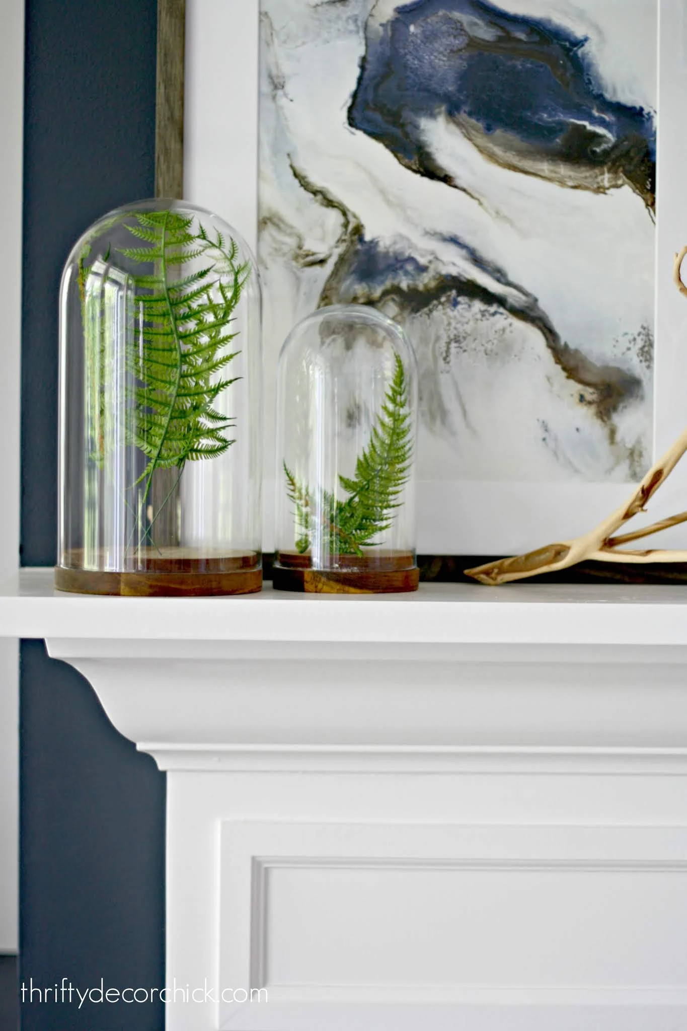 I like to add a bit of interest to faux greenery by putting it under glass: