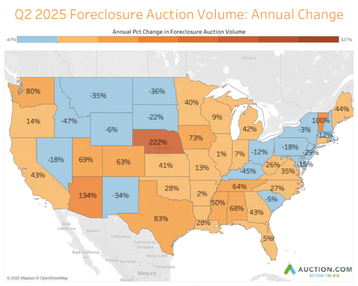 Auction.com, the nation’s leading distressed real estate marketplace, today released its Q2 2025 Auction Market Dispatch, which shows that the supply of distressed properties available at auction continued to climb in the second quarter of 2025, reaching two-year highs even while demand from auction buyers dropped to multi-year lows, signaling a shift in the distressed marketplace that could have implications for the broader real estate market.