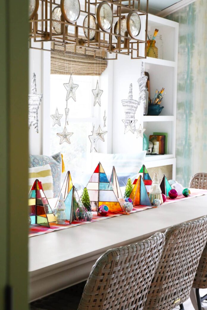 I’m not sure why exactly I lost my everloving mind, but on top of all the regular festivities and obligations and work… I decided to add more to that by making NINE free-standing stained glass trees for our tabletop this year. I’m thrilled to be back today with another stained-glass project: Free-Standing Stained-Glass Christmas Trees {with a free pattern!}