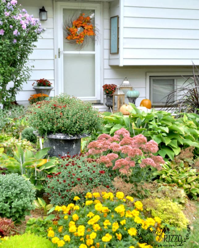 Add Fall Flowers in Planters and Pots for Front Porch Pumpkin Decorating Ideas