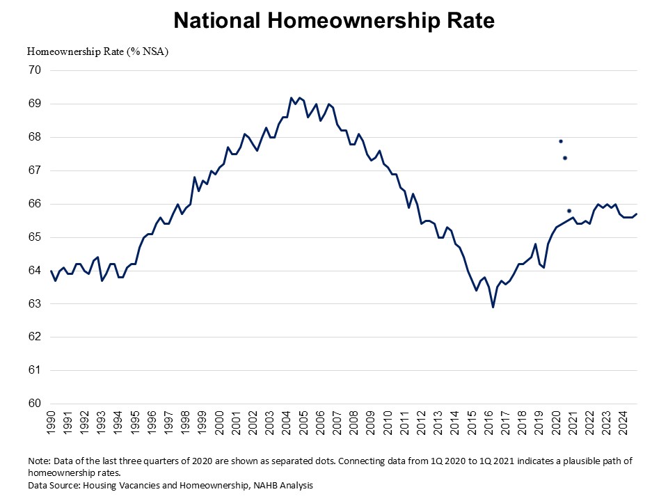 The U.S. homeownership rate inch up to 65.7% in the last quarter of 2024, hovering at the lowest rate in the last two years. The homeownership rate remains below the 25-year average rate of 66.4%.