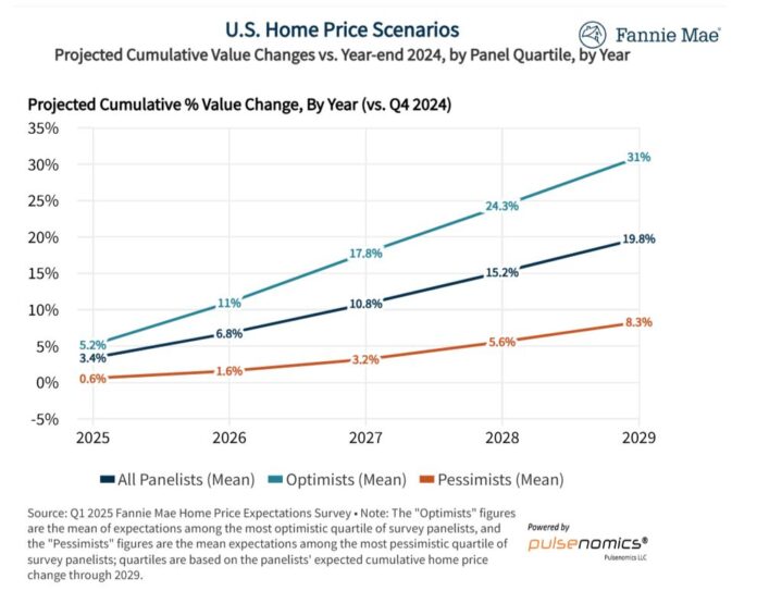 So, the big takeaway from this “Fannie Mae Home Price Expectations Survey (HPES)” is a shift towards moderation. Forget the double-digit annual gains of the recent past; experts anticipate a more sustainable pace of growth, averaging around 3.4% in 2025 and 3.3% in 2026, leading to a cumulative increase nearing 20% by the end of 2029.