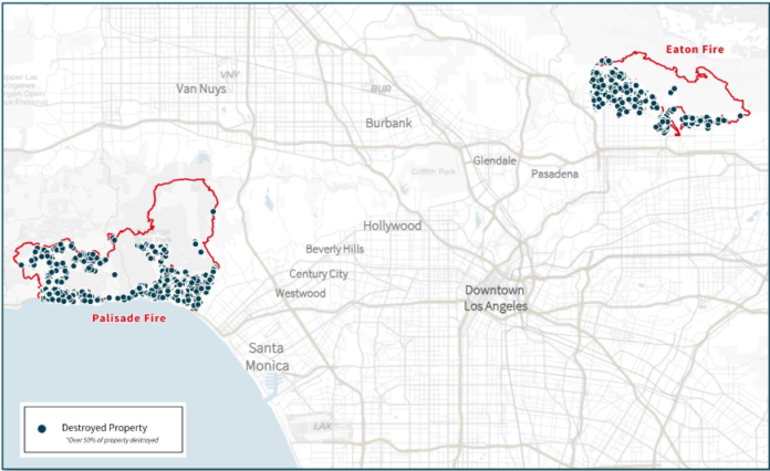 Though less publicized, the region’s retail, office and industrial commercial real estate sectors were also hit. About 200 commercial buildings, predominantly retail properties and food-and-beverage establishments, were destroyed. They represent, JLL stated, nearly half of the retail establishments and about one-third of the total retail space in the fire zones.