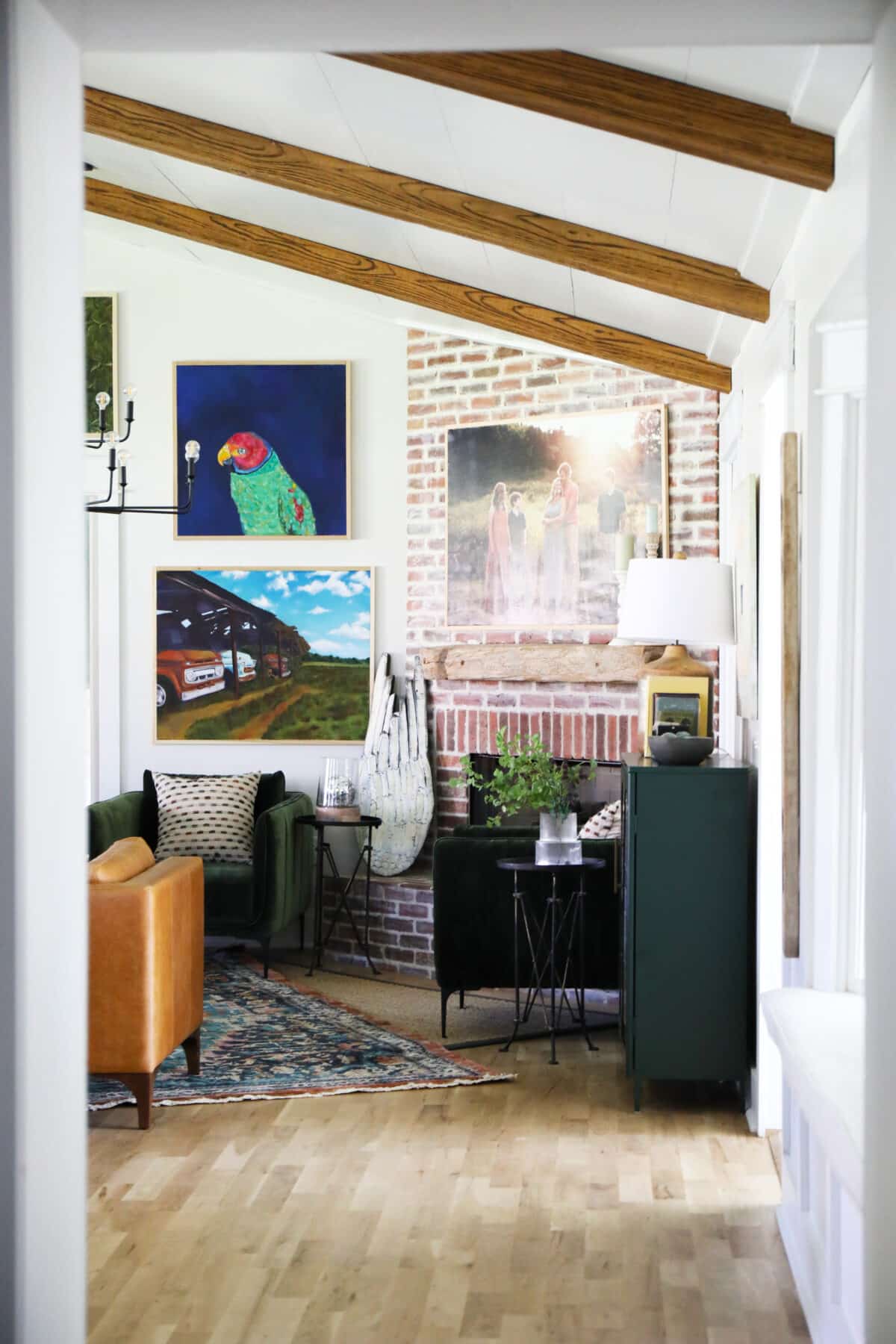 If that works for you, we say go for it. There are plenty of flat screen options these days, and we’ve even seen others paint their TVs or frame them out to work as a frame, while displaying digital art. I am a believer in old-school art and photography, just like I’m a believer in classic books for the home. I will always love having the option to create or display as I want with a new piece over the fireplace. Our home is a rotating art and project gallery, so I love the option of switching out the looks and painting for my own space. As an artist, I prefer it that way. I love this classic look.