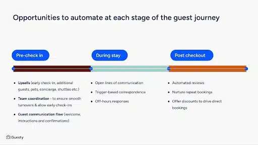 Advanced automation doesn’t just streamline tasks – with the proper technology, it orchestrates sophisticated sequences of actions that work together seamlessly to transform every aspect of property management. Let’s explore how these intelligent systems create value at every stage of the guest journey: