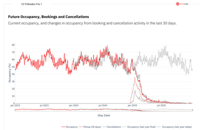 Data from PriceLabs reveals that occupancy rates in affected neighborhoods, including Altadena, Pacific Palisades, Malibu, Pasadena, and Sierra Madre, have for the most part not spiked.