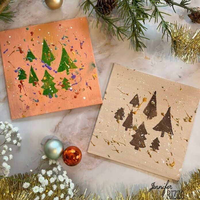 Make Easy Splattered Painted Christmas Tree Canvases