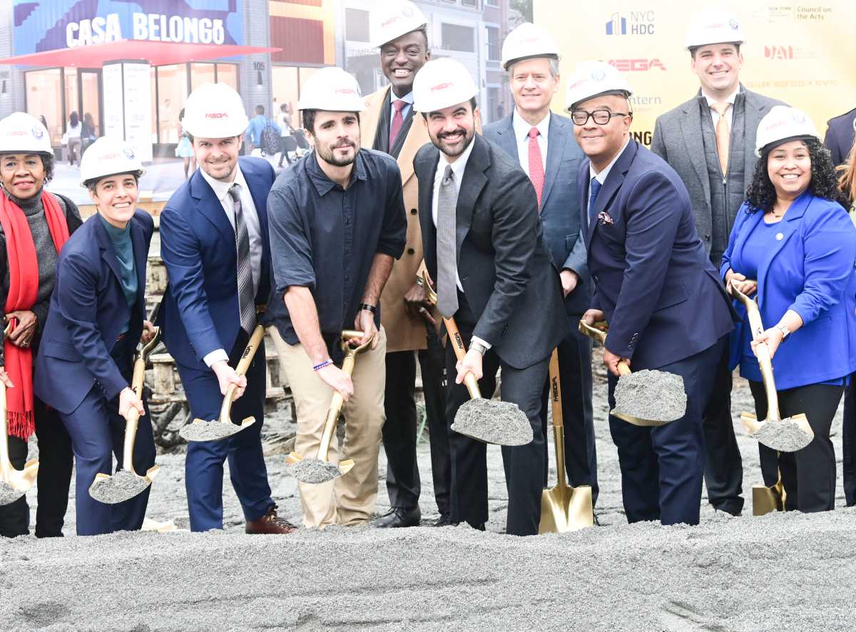 Also joining Mamdani for the groundbreaking were Council Members Yusef Salaam and Elsie Encarnacion, and Assembly Member Eddie Gibbs; the onsite provider of supportive services, Lantern Organization; the financing side, including Goldman Sachs, which financed over $200 million for the project; and Casa Belongó’s executive director, Marietta Ulacia.