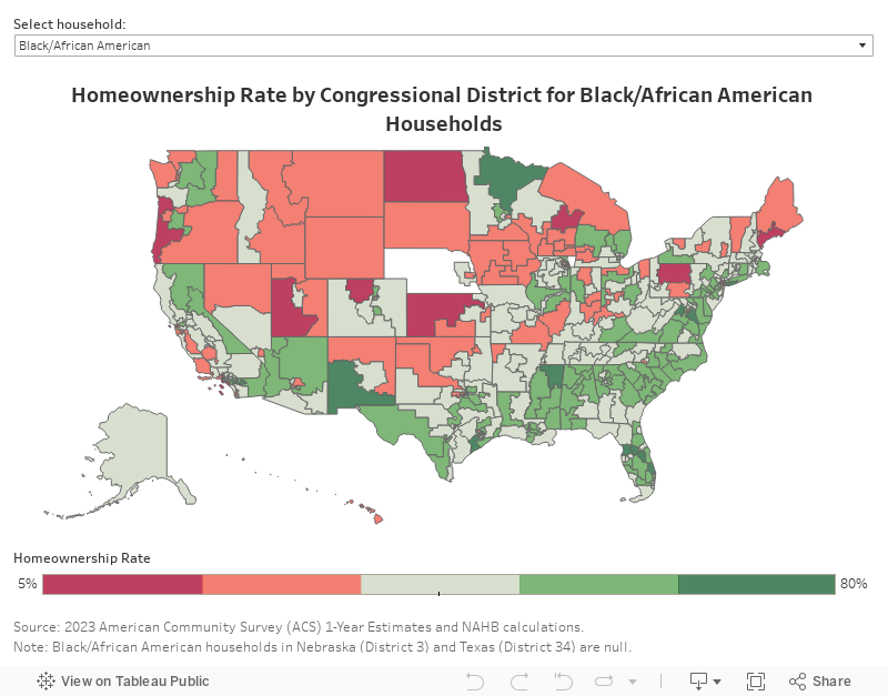 | Congressional District | Black/African American Homeownership Rate | Overall Homeownership Rate | Share of Population |