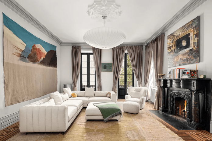 An exterior restoration project on the 26-foot-wide brick house, set on the prominent corner of Cranberry and Willow streets, was already completed before it last sold. The LPC approved reno included work on the mansard roof, the brownstone stoop, and the ironwork fence. That mansard roof, complete with cresting, is a later 19th century addition to the circa 1830s house, bringing a Second Empire touch to the original Federal-style house.