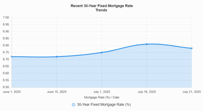 As of July 21, 2025, the 30-year fixed mortgage rate sits at around 6.78%. This is a slight dip from 6.81% just a few days earlier on July 16. Interestingly, rates have been below 7% for the past 26 weeks! This suggests that while there are ups and downs, the mortgage market has been somewhat steady.