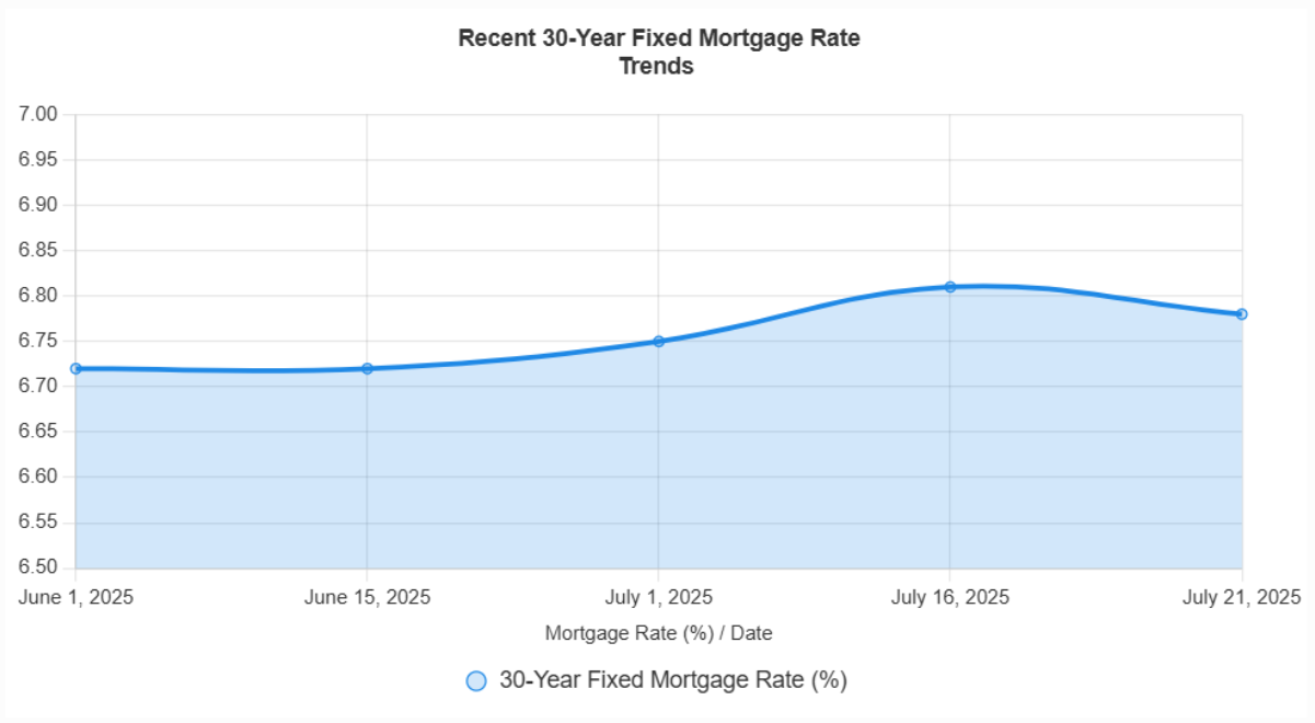 - Mid-July 2025 (around July 17): Increased slightly to 6.75%