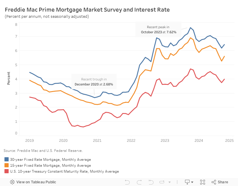 In October, mortgage rates reversed their recent downward trajectory, returning to levels two months earlier. According to Freddie Mac, the average rate for a 30-year fixed-rate mortgage increased 25 basis points (bps) from September to 6.18%. The 15-year fixed-rate mortgage saw an even steeper increase of 34 bps to land at 5.60%.