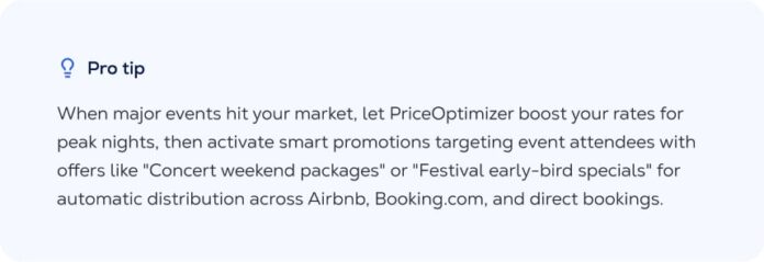 You’ve heard about the Taylor Swift effect. A high-profile event in your region hikes up rates, and you need a new pricing strategy to keep up. Guesty PriceOptimizer now factors in local concerts, festivals, and sports events so you can price without flying blind and push targeted promotions across booking channels to capture surging demand.
