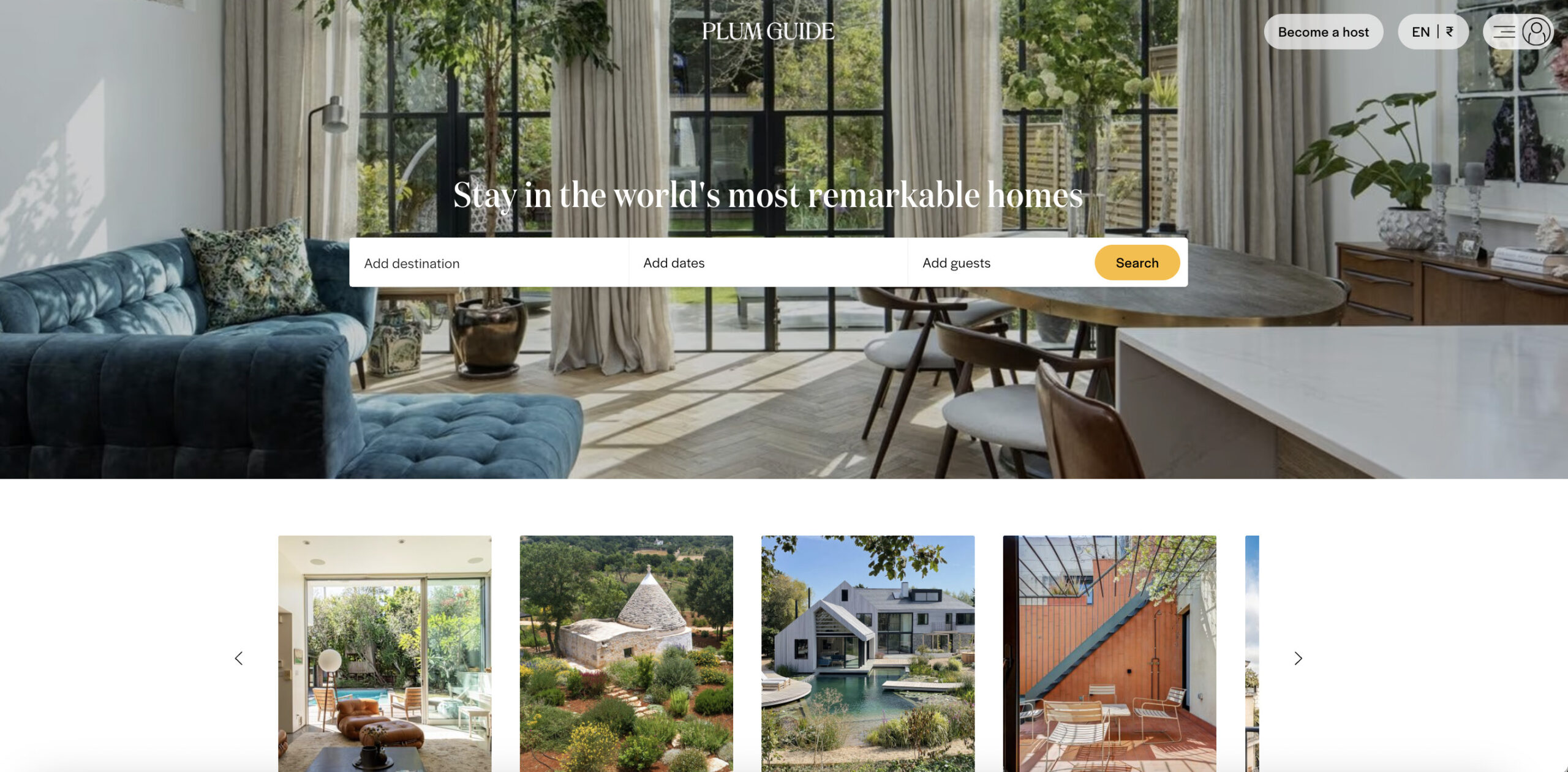 • A platform for discerning travelers, Plum Guide only features the top 3% of homes in any destination. It’s a badge of quality that attracts high-value bookings.