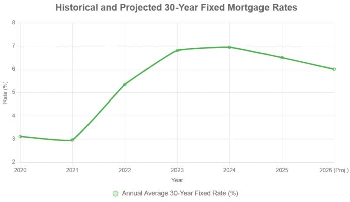 | Mortgage Bankers Association (MBA) (October 2025) | 6.5% | ~6.3% (average for 2026) | Expects rates to level off; more home loans being made. |