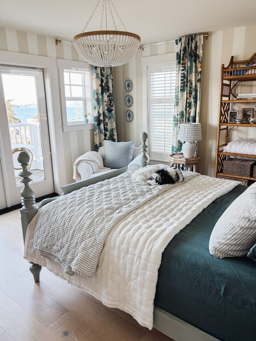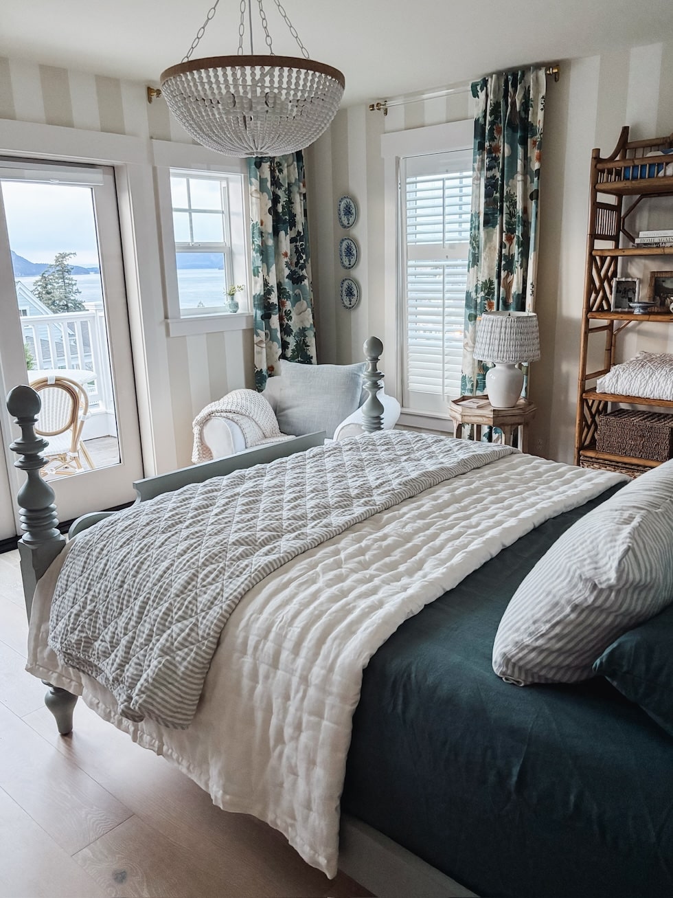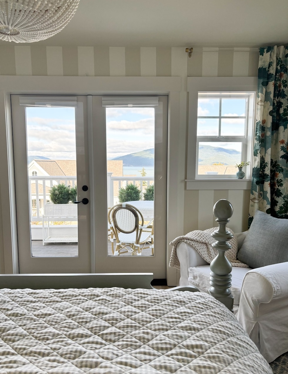 And secondly, with the primarily northern light through our doors and windows all day, wanted to set a cozier mood which would let the bed and the expanse of moody blues we see outside every day, stand out.