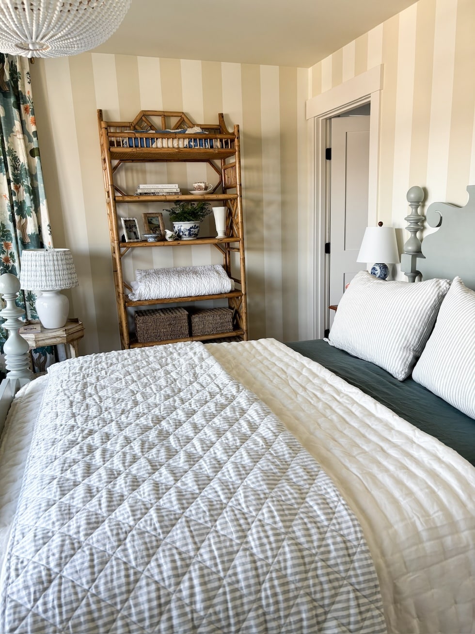 The bedding is all from Quince, I loved the color of these linen sheets (ocean) — they work so well with the curtains!