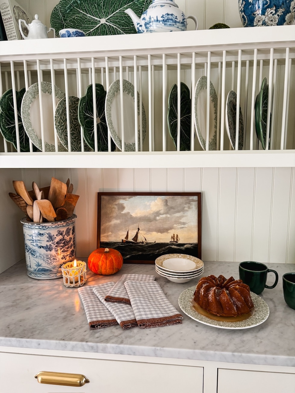 Welcome to some scenes from our cozy fall kitchen! My daughter Courtney and I recently styled our kitchen for a brand video we made for a partnership on Instagram, so we thought it would be fun to take some photos to share with you here!