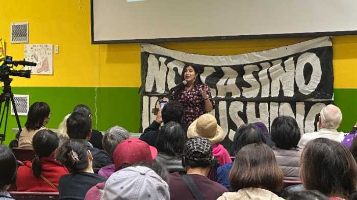Organizers of Sunday’s protest signalled their intent to hold a Community Rally Against the Casino outside Queens Public Library’s Flushing location at 1 p.m. on Sunday, Nov. 16. Hu said he is hoping that 2,000 join the protest, which he said would make it the largest in the history of Downtown Flushing.
