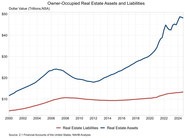 Owners’ equity share of real estate assets remained above 72% for the fourth straight quarter. The share in the fourth quarter of 2024 was 72.2%, down from a peak of 73.0% just two quarters ago.