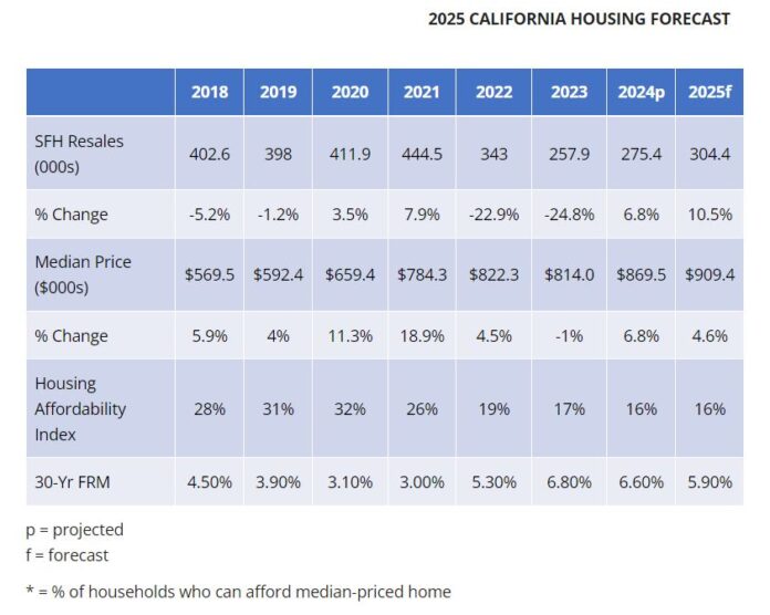However, optimistic projections indicate that interest rates are likely to decrease slightly in 2025, potentially alleviating the lock-in effect. C.A.R. anticipates the average 30-year fixed mortgage rate will fall from 6.6% in 2024 to 5.9% in 2025. While these rates continue to exceed pre-pandemic levels, this downtrend could encourage more homeowners to enter the market, thus increasing available inventory. The easing of interest rates also enhances affordability for buyers, stimulating the housing market.