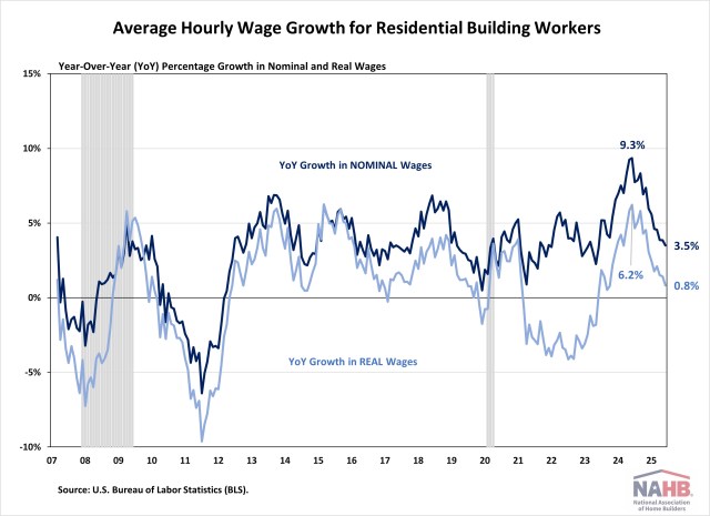 Both real and nominal wage growth for residential building workers slowed during the second quarter of 2025, reflecting a broader cooling in the construction labor market, according to the latest report from the U.S. Bureau of Labor Statistics (BLS).