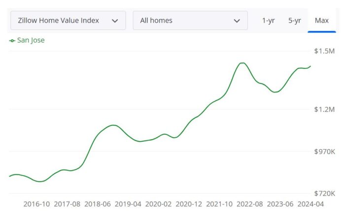 Additionally, limited land availability and strict zoning regulations restrict new construction, further exacerbating the supply-demand imbalance. The desirable climate, quality of life, and proximity to job opportunities also contribute to the high demand for housing in San Jose, making it a sought-after market with premium prices.