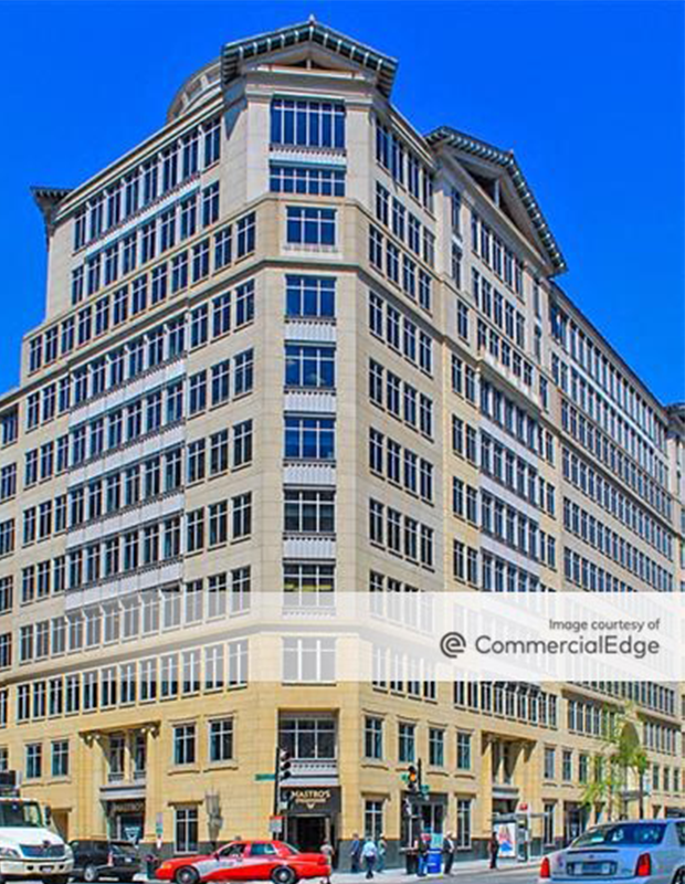 According to CommercialEdge, the 236,000-square-foot, Class A building was developed in 1998. The 12-story property takes up the entire block between F and G streets in the business district of downtown D.C. Amenities include a lounge, a fitness center with a yoga studio and showers, a rooftop terrace and a game room.