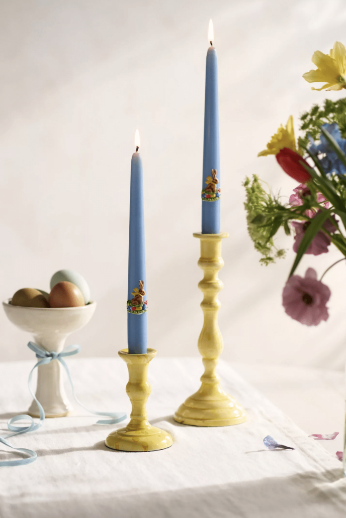 Such a springy tablescape! Root candleholders
